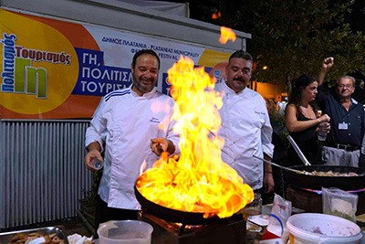 Γαστρονομική Δημιουργία: Οι σεφ του Δήμου Πλατανιά, Γιάννης Κατσιφαράκης και Αντώνης Παρασκάκης, παρουσίασαν εντυπωσιακές, δωρεάν δημιουργίες, με κεντρικά υλικά το κρασί και το πετιμέζι, αναδεικνύοντας τη σύγχρονη κρητική κουζίνα.