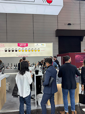 Πλήθος επαγγελματιών επισκέφθηκαν το ενιαίο wine bar που υποστήριζε η οινοχόος Υρώ Κολιακουδάκη Dip WSET, όπου οι επισκέπτες είχαν τη δυνατότητα να δοκιμάσουν ετικέτες από 36 οινοποιεία του νησιού και να πληροφορηθούν για τον Κρητικό αμπελώνα. Το ιδιαίτερο γραφικό που δημιουργήθηκε για να πλαισιώσει την παρουσία των οινοποιών, έδινε χρήσιμες πληροφορίες για τις τοπικές ποικιλίες, τις οινοπαραγωγικές ζώνες ΠΟΠ και ΠΓΕ, αλλά και για την μορφολογία του νησιού.