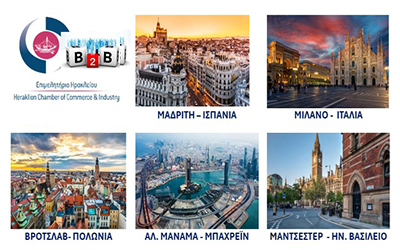 Με βάση ένα στοχευμένο πρόγραμμα που έχει σχεδιαστεί σύμφωνα με τις ανάγκες των επιχειρήσεων, το Επιμελητήριο Ηρακλείου πρόκειται να συμμετάσχει σε πέντε σημαντικές επιχειρηματικές εκδηλώσεις, οι οποίες περιλαμβάνουν προκαθορισμένες συναντήσεις B2B.