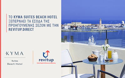 Άκρως επιτυχημένη θεωρείται η συνεργασία της RevitUp.direct, με το Kyma Suites Beach Hotel, ξενοδοχείο πόλης 5 αστέρων στο Ρέθυμνο καθώς η συνεργασία αυτή οδήγησε σε αξιοσημείωτα επιτεύγματα, με την πρόωρη επίτευξη των εσόδων του 2022 μέσω ενός ολιστικού rebranding.