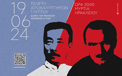 Εκδήλωση της τελετής των αποκαλυπτηρίων της δωρεάς του Μουσείου Lu Xun προς το Μουσείο Νίκου Καζαντζάκη θα λάβει χώρα την Τετάρτη 19 Ιουνίου 2024, ώρα 20:00 στην πλατεία του Μουσείου Νίκου Καζαντζάκη στη Μυρτιά.