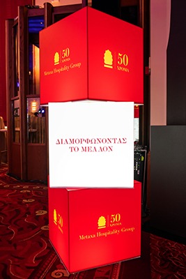 «Με βαθύ σεβασμό στο παρελθόν, ανοίγουμε νέους δρόμους για το μέλλον της φιλοξενίας», τόνισε στην ομιλία του ο Διευθύνων Σύμβουλος του Metaxa Hospitality Group Ανδρέας Ν. Μεταξάς, απευθυνόμενος στους εκατοντάδες προσκεκλημένους -εκπροσώπους της Πολιτείας, των τοπικών αρχών, θεσμικών φορέων και επιχειρήσεων του τουρισμού, συνεργάτες, στελέχη και φίλους του Ομίλου- που τίμησαν με την παρουσία τους την εορταστική εκδήλωση στο συνεδριακό κέντρο «Μίκης Θεοδωράκης».