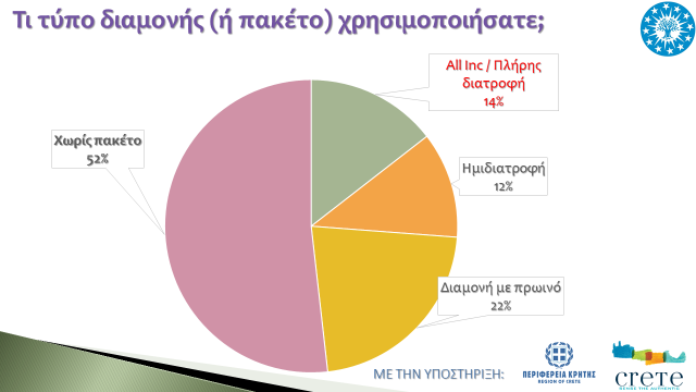 • Οι μισοί επισκέπτες δεν προτιμούν κανένα πακέτο διατροφής στα τουριστικά καταλύματα.