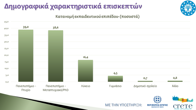 • Το 80% των επισκεπτών είναι απόφοιτοι τριτοβάθμιας εκπαίδευσης με μέσο οικογενειακό εισόδημα στα 80.000 ευρώ.