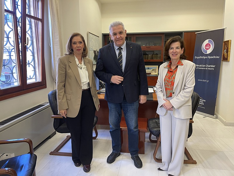 Η Πρέσβειρα της Γαλλίας στην Αθήνα, Laurence Auer, κατά τη συνάντησή της με τον Πρόεδρο του Επιμελητηρίου Ηρακλείου, Βαγγέλη Καρκανάκη, τόνισε το ζωηρό ενδιαφέρον των γαλλικών επιχειρήσεων για στρατηγικές συνεργασίες με τον τεχνολογικό και καινοτόμο τομέα της Κρήτης.